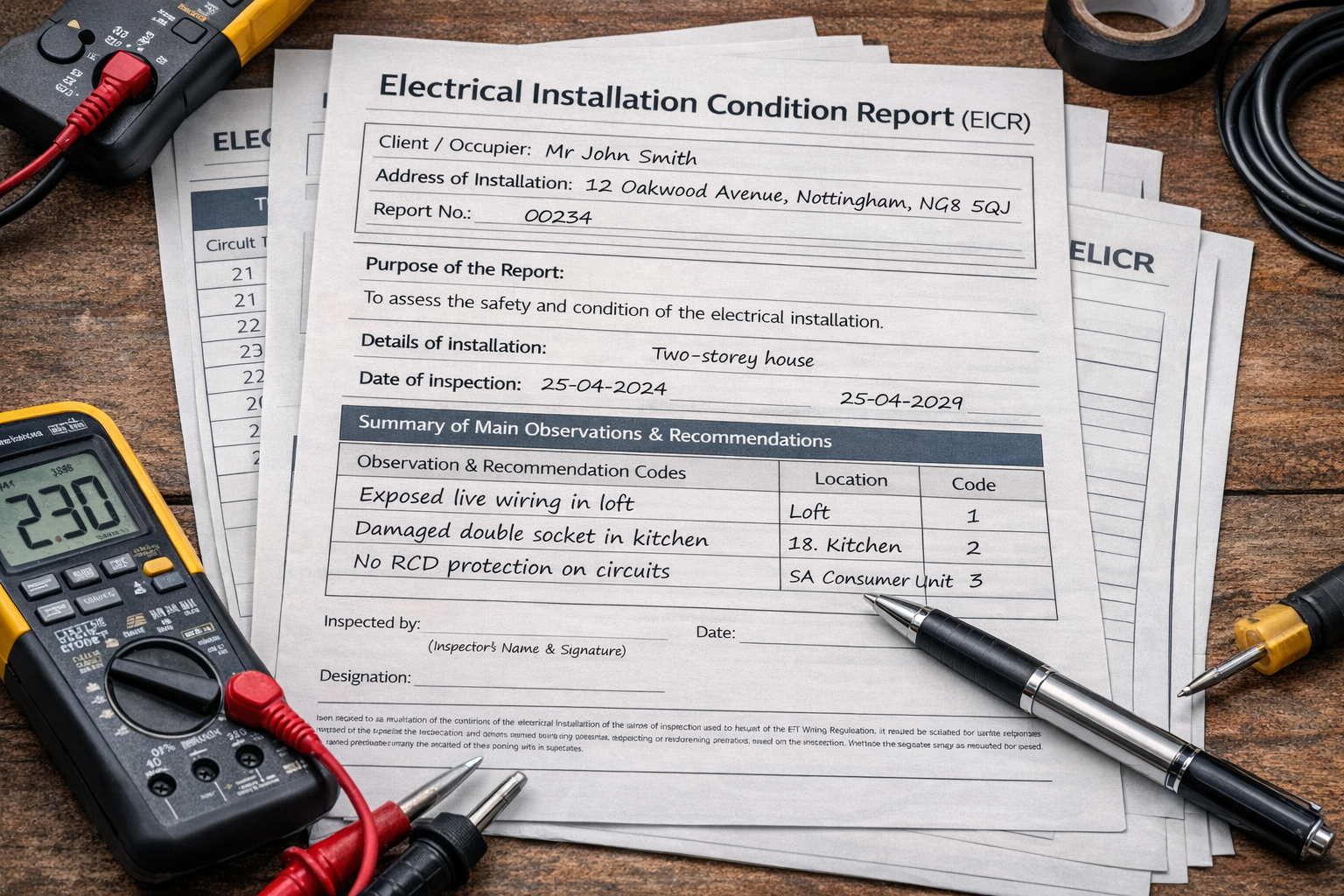 • Expert advice on electrical safety planning and future inspections.